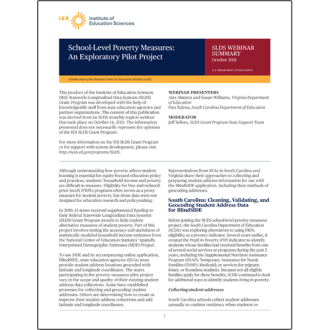 SLDS Webinar: School-Level Poverty Measures: An Exploratory Pilot Project