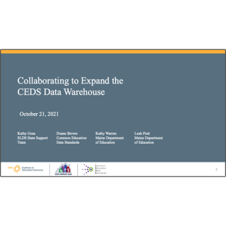 SLDS Webinar: Collaborating to Expand the CEDS Data Warehouse