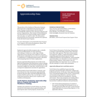 Because apprenticeship programs serve both recent high school graduates and experienced workers training for new professions, data from these programs can offer important insights into state labor market trends as well as long-term employment outcomes for apprentices. Representatives from North Dakota, Kentucky, and Iowa discuss how they incorporate apprenticeship program data into their SLDSs and how they use the data to better understand questions about career readiness and workforce development.